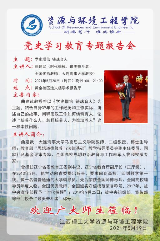 全国“时代楷模”曲建武教授来校做党史学习教育报告