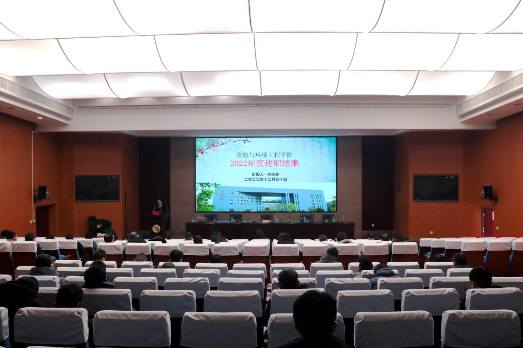 本网讯 1月3日下午,资源与环境工程学院于黄金校区逸夫楼学术报告厅召开学期末全院教职工大会。资源与环境工程学院院长何桂春、党委书记陈明、党委副书记饶先发、副院长陈飞、余新阳和全体教职工参加了大会。