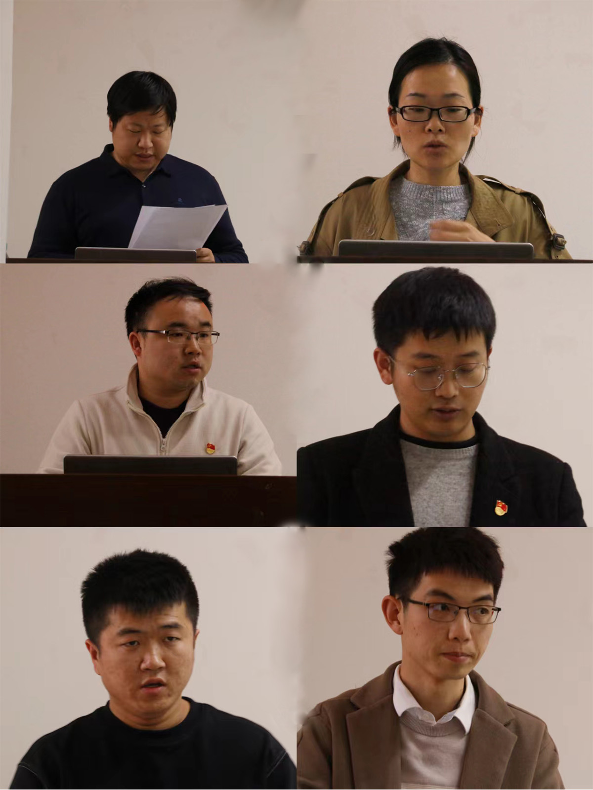 学院本科、研究生共六个学生党支部书记张吉勇、赖华、叶景胜、刘浩、张小普、梁颜祯依次上台,重点从党支部建设成绩和成效、思想政治工作、党支部建设存在问题及未来改进措施等方面汇报了履职情况。