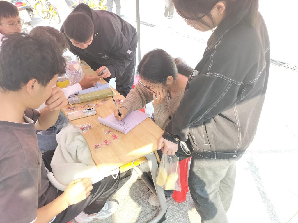 为增加活动的趣味性和检验活动的宣传成效。志愿者们还进行了“有奖问答”“不要让艾标签化”和“线索墙”等互动环节。活动时,一位国际生利用手机线上翻译参与有奖问答,答完卷后他用中文询问效果,在得到一个肯定的大拇指手势后,他微笑着用手势指了指横幅的主题“知‘艾’防艾,你我同在”。其他同学也纷纷加入到互动环节中来,志愿者们将红丝带胸针、红丝带钥匙扣等具有传递关爱意义的小物品以奖品的形式分发给参与互动的同学。