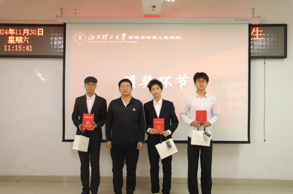 经过激烈的角逐,成长赛道中,采矿221葛浩然获得一等奖,地质231祝涛涛、环境242艾科热木、矿加242廖弘韬获得二等奖,矿加241李浩阳、矿加241林宇航、矿加241李齐、矿加241刘红晨、环境241张婷、环境243张子浩获得三等奖;就业赛道中,生物221程婷获得一等奖、环境222袁国栋获得二等奖、采矿(中外)221张灝宇获得三等奖。