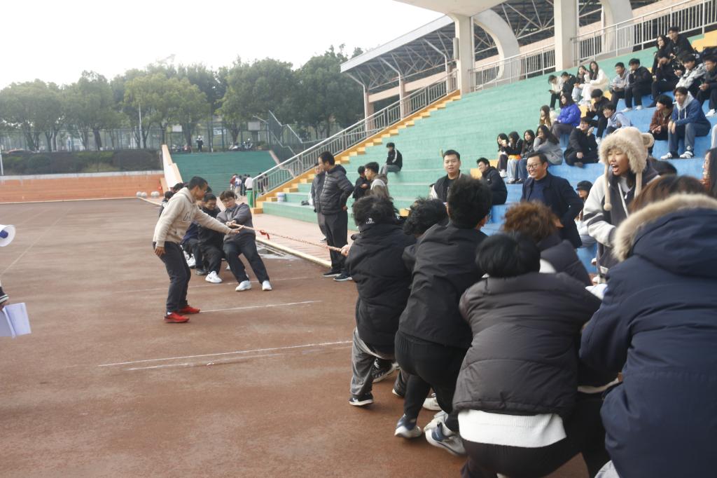 趣味运动会共有拔河、两人三足、车轮滚滚、跳大绳、定点投篮五项活动。在进行了400米热身慢跑后开始第一项拔河比赛,拔河采取抽签的方式决定参赛班级,最后决出第一名为地质工程221班;两人三足采取10*50接力的方式进行,耗时最低的班级获胜,第一名为地质工程241班;车轮滚滚每个班选出10人,以塑料袋代替履带,各班级成员起到驱动轮的作用,致使“履带”前进,率先到达终点的班级获胜,决出第一名为地质工程241班;跳大绳需每个班级出任意人员,在三分钟内跳绳次数最高的班级获胜,决出第一名为地质工程221班;定点投篮为趣味活动,不计入运动会的成绩评选,投中者可领走任一奖品,比赛现场,各班人员积极参加,成功领走所有奖品。