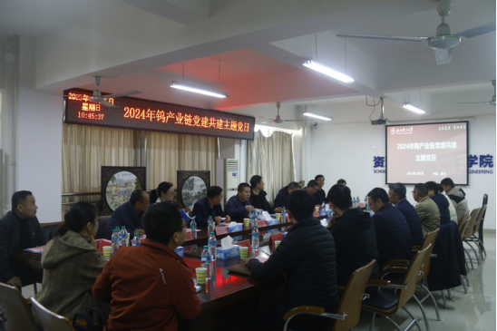 本网讯 1月5日,为促进学校与企业党建工作联合,资源与环境工程学院于黄金校区逸夫楼第一会议室顺利召开2024年钨产业链党建共建主题党日。我校党委常委、副校长董冰岩,江西下垄钨业有限公司党委书记、总经理段志文和党委委员、副总经理殷建忠,江西省地质局第七地质大队党委委员、副队长黄敏华,江西鑫通机械制造有限公司党委书记黄良,我校资源与环境工程学院党委书记陈明、副院长陈飞以及各单位相关人员参加了主题党日。会议由陈明主持。