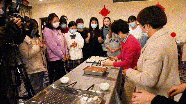 为营造节日气氛,南昌航空大学一食堂张灯结彩富有年味。学校为参与活动的师生们准备了多样的过年食材,学校领导和留校学生们围拢在面点案头,一起包饺子、做馒头、捏包子,共同感受着南昌航空大学这个“大家庭”的温暖。同学们还用手中的果酱笔,在发糕和碗盘上绘制牛年祝福图案和吉祥语,为祖国、家乡和学校祈福,表达对师长和亲人的美好祝愿,也为自己来年的新气象新发展加油鼓劲。