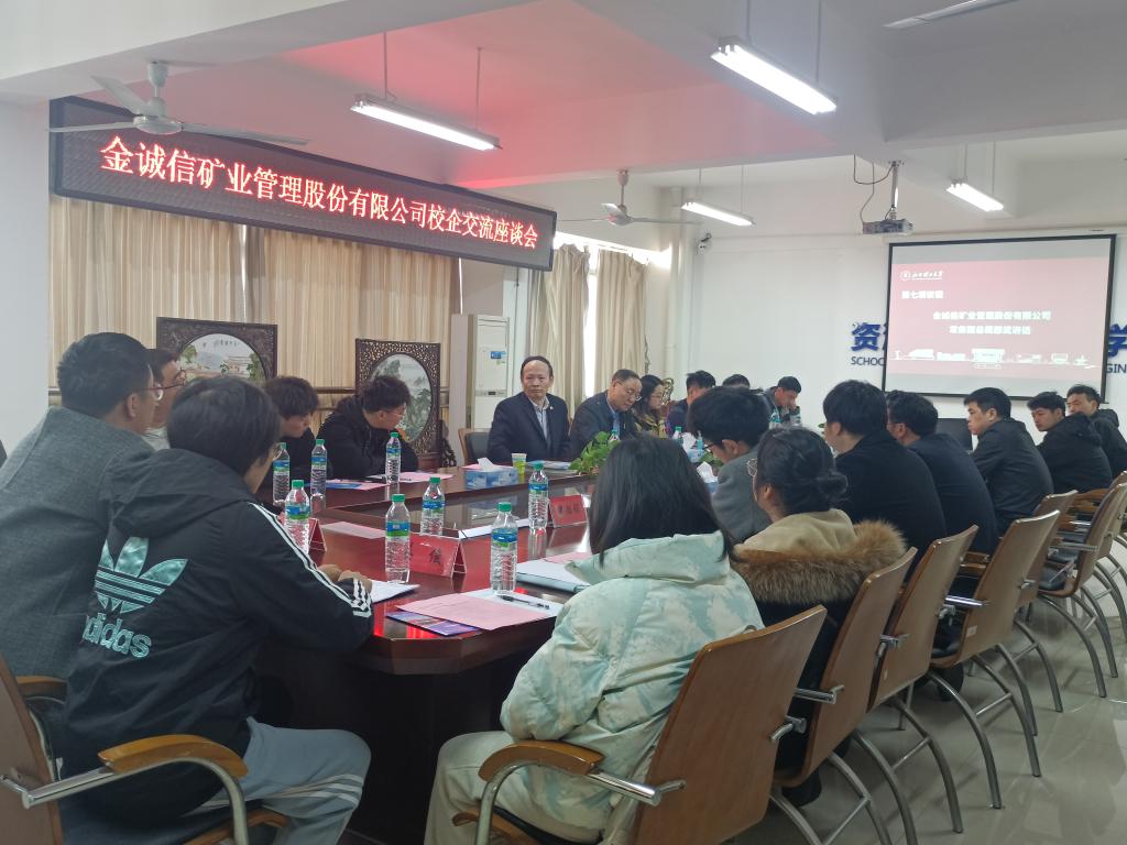 本网讯  3月1日,我校82届采矿校友、金诚信矿业管理股份有限公司常务副总裁邵武我校85矿机校友、金诚信矿业管理股份有限公司副总裁王亚昆一行来校交流我院党委书记陈明、党委副书记饶先发、副院长余新阳及相关辅导员和2019级2020级各专业学生代表参加了访谈交流。会议由饶先发主持。