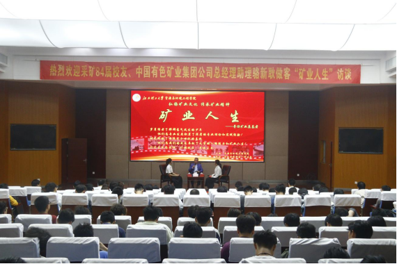 本网讯  10月21日,采矿84届校友、中国有色矿业集团公司总经理助理骆新耿受邀做客“矿业人生”访谈,在黄金校区逸夫楼学术报告厅以“在非洲大地上追逐中国梦”为主题进行了分享。资源与环境工程学院相关师生近300人参加了访谈。访谈由环境211匡奕、矿业231赵佳鑫主持。