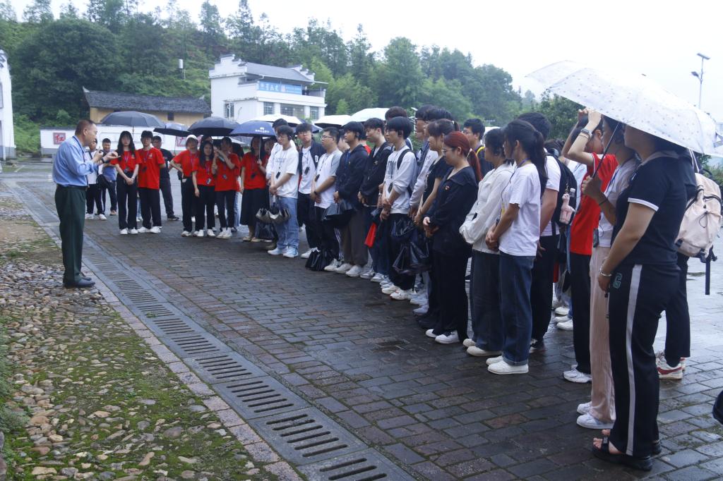 叶坪革命旧址,这是中国第一个全国性的红色政权——中华苏维埃共和国临时中央政府的诞生地。师生们跟随讲解员的步伐,在谢家祠堂参观革命据点,倾听党和人民的故事,领会艰苦奋斗的革命精神;在红军烈士纪念塔,整齐列队、肃立默哀、深深地三鞠躬,向烈士们表达着最崇高的敬意和怀念之情;在毛泽东故居,仰望着见证历史的不朽老树,跨越时间长河,回忆小小天窗,感动于毛主席与人民的故事;在华屋村,十七棵松树下,倾听华屋村老书记讲述村与党的红色历史,在“红军村”中感受到华屋英烈们的坚定信仰和无私奉献……