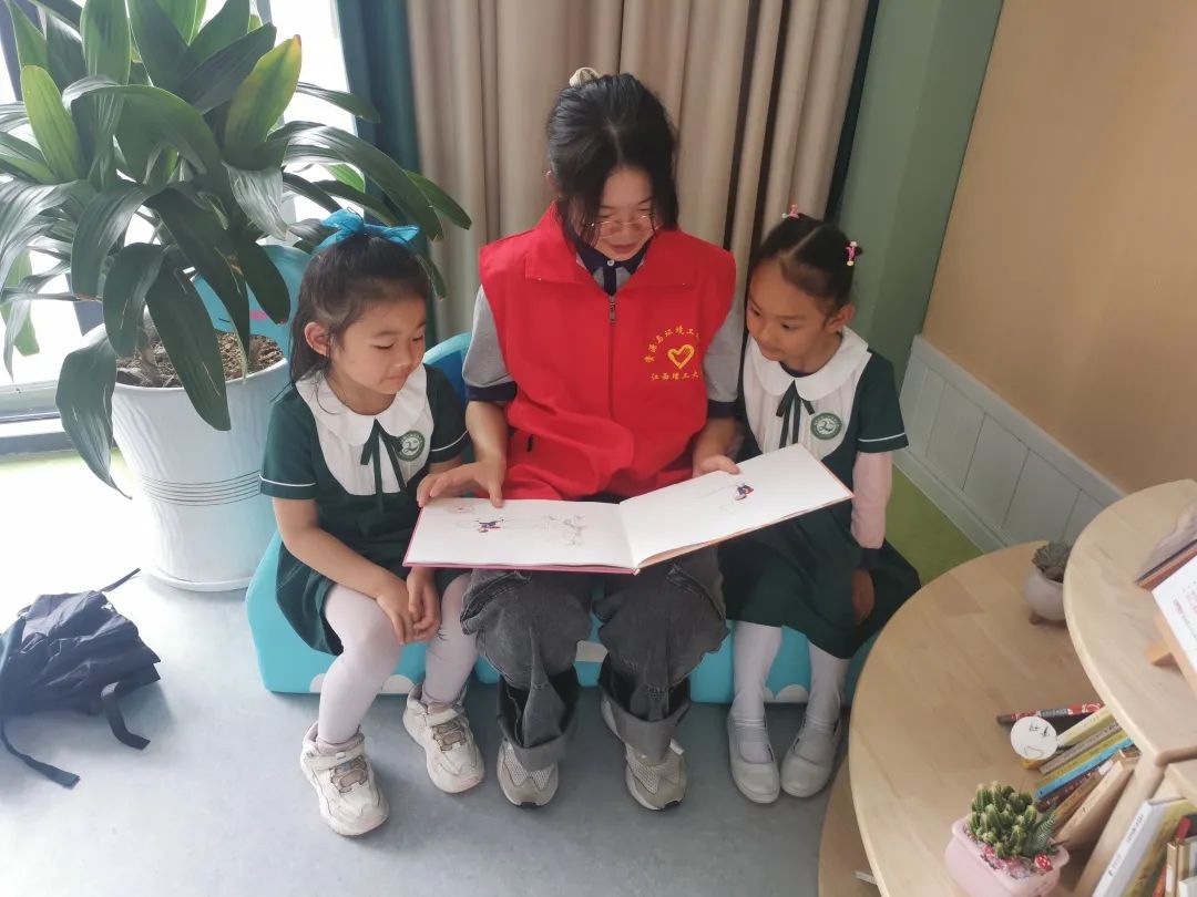 4月21日,学院联合水南街道学府社区走进章贡区第二实验幼儿园(理工园区)开展“沉浸书香 伴我成长”绘本阅读活动,志愿者与社区工作人员、幼儿园老师一起,为孩子和家长们讲解绘本。学院志愿者代福杰为大家分享儿童绘本《勇敢做自己》,从主人公小鱼儿丹尼的视角,为大家阐述了每个人都是特别的存在,每个小朋友都要勇敢做自己。随后,志愿者们带领孩子们来到园区阅读角,进行各种类的绘本引导阅读,并通过做游戏的形式与孩子一起运动并给予相关奖励等方式,激发孩子们读书的兴趣,培养孩子们从小爱读书的习惯以及善于思考的个性。