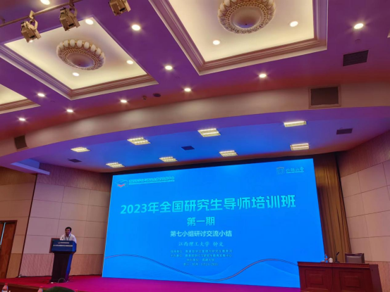 在研讨与交流环节,钟文老师作为第7组组长组织学员围绕“全国研究生教育会议精神、研究生导师岗位职责、研究生培养质量保障、研究生心理健康教育”等主题展开了热烈讨论,并在结业仪式上作交流发言。