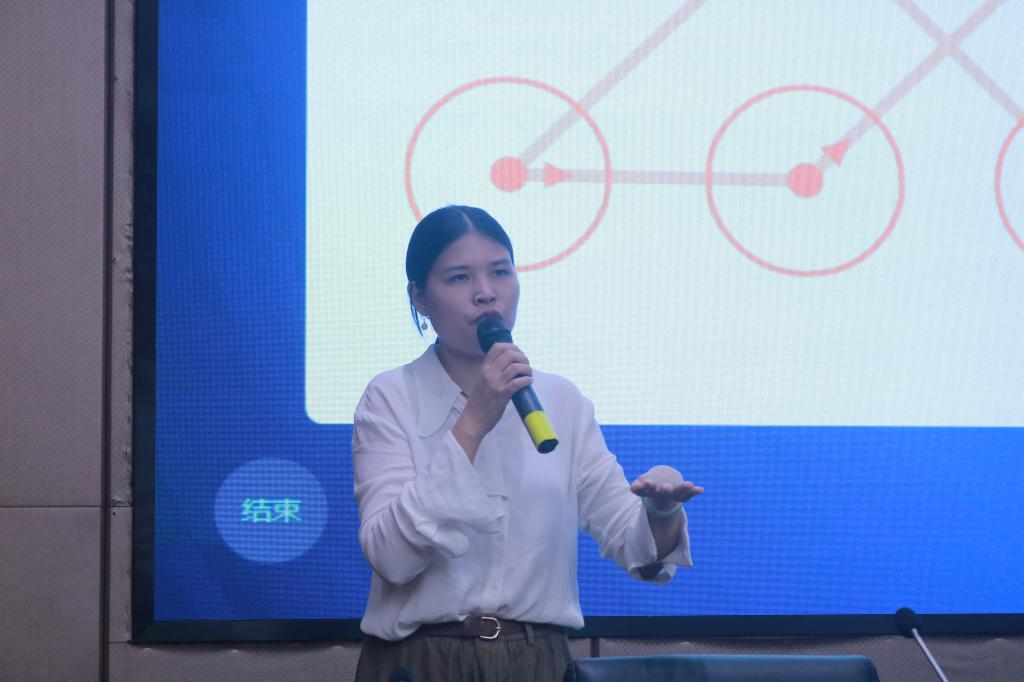董菲飞利用签到互动的形式引出培训的主题——“知识图谱”。她从“学生学习”“老师备课”“专业评测”三大要素阐述了构建知识图谱在教学任务上的优越性以及快捷性。她指出,知识图谱可以帮助学生快速学习,将相关联的知识点都标注出来,方便学生快速理解;它拥有巨大的备课资源,让老师的备课内容不再単调,也能快速找到大量正版有用的资源;它可以帮助老师实现数据驱动、精准教学,让知识点和资源更加饱满。