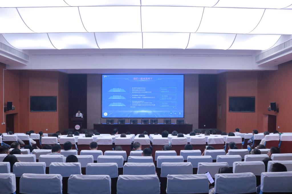 本网讯  为促进教学体系与时俱进、提高教育教学质量,10月31日,我院和冶金工程学院在黄金校区逸夫楼报告厅举行了以“知识图谱构建智慧教学新生态”为主题的教学培训大会,超星学习通教师董菲飞受邀担任主讲。我院党委副书记张春雷、副院长陈飞,冶金工程学院副院长王瑞祥以及两院全体教职工参加了培训。会议由陈飞主持。
