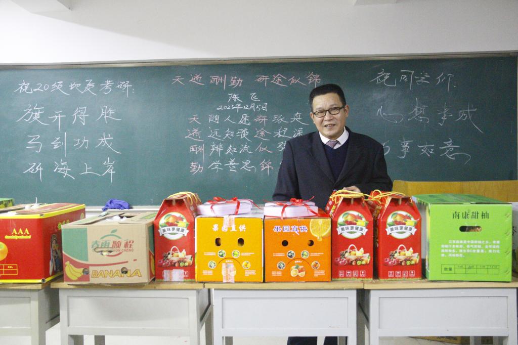 据悉,自2010年至今,每年的12月初考研备考时,陈飞老师都会自费为地质考研学子准备一次这样的“水果盛宴”,为考研学子们加油打气,这一做就是14年!陈飞老师曾获得宝钢优秀教师奖、江西省新时代赣鄱先锋、全国无偿献血奉献金奖、赣州市五一劳动奖章,校模范共产党员、优秀班主任、最受学生欢迎的十佳教师等荣誉,被同学们亲切的称为“大飞哥”和“最有爱班主任”。