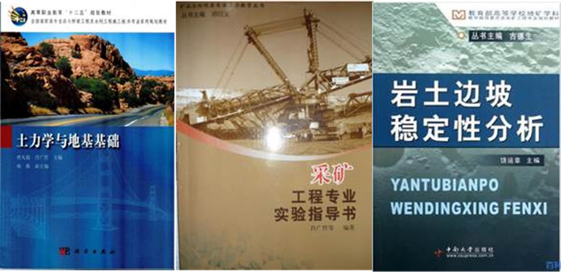 讲授的《高等采矿学》被评为省级优质课程,《金属矿床地下开采》被评为省级精品课程;所编写的教材《岩土边坡稳定性分析》已被十多所高校使用。先后指导四位同学获得全国高校采矿工程专业学生实践作品大赛一等奖。