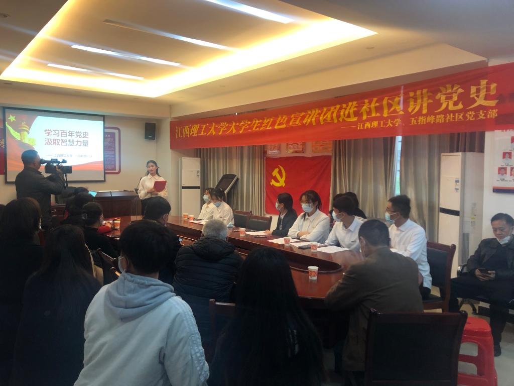 本网讯  正值建党一百周年,我院大学生红色文化宣讲团开启了红色故事宣讲巡演,一周一社区,一次五个故事,目标是实现章贡区社区全覆盖,将党的奋斗历史送入家家户户。