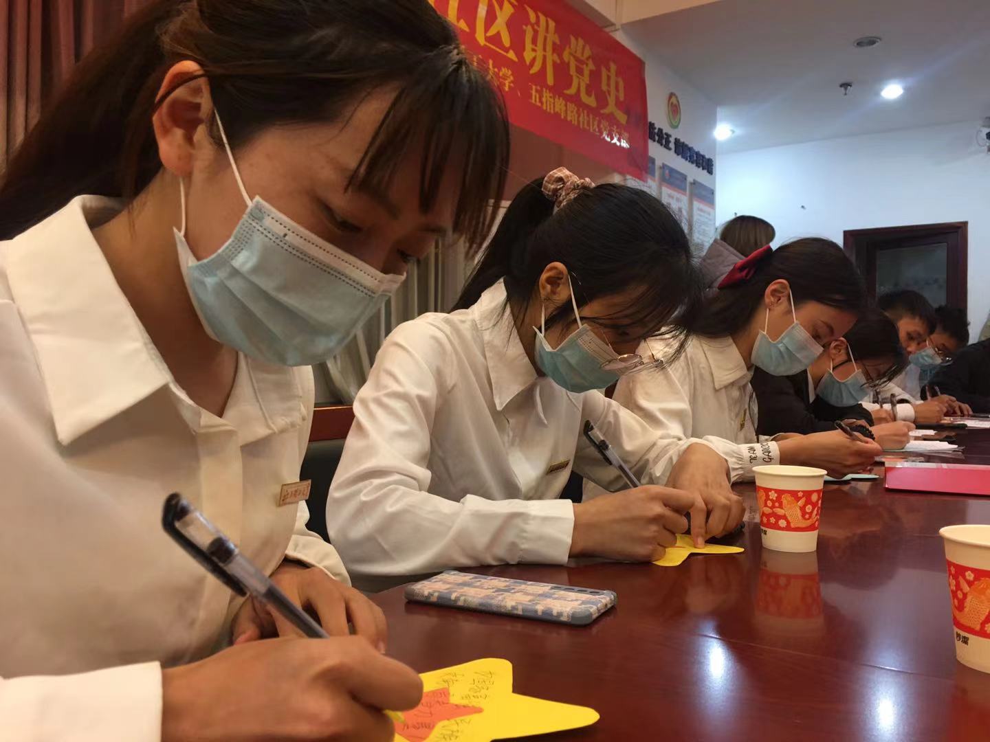 宣讲结束后,在红色文化宣讲团成员的组织下,同学们和社区居民一起在卡片上写下了自己的入党初心。宣讲团成员郭江凤这样写的:“每每我读到老一辈共产党人为了革命牺牲时,我满心都是不舍,我好想要让他们也能同我们一起享受如今的太平和幸福。现在,他们的使命落到了我们这一代身上,我就想像他们一样,为着国家,为着人民做点什么”。