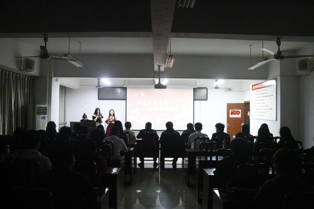 本网讯 11月4日,我院在黄金校区逸夫楼第二会议室举办“青春告白祖国,奋斗薪火相传”为主题的观摩“双学”活动。学院学工办副主任兼团委副书记刘浩、辅导员叶景胜、环境231班班主任钟常明、生物231班班主任龚丹丹以及校观摩小组成员共同参加了此次观摩“双学”活动。本次观摩“双学”活动由环境231、环境233、生物231三个团支部承办。活动由环境233班张紫怡和生物班231王淋两位领学人主持。
