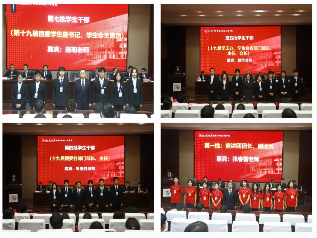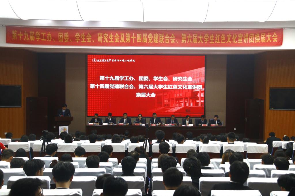 我院举行第十九届学工办、团委、学生会、研究生会及第十四届党建联合会、第六届大学生红色文化宣讲团换届大会