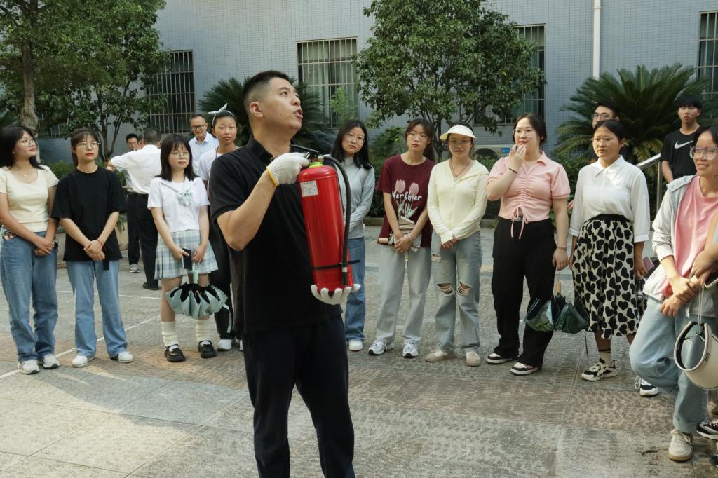 随后,学院师生进行了火灾逃生疏散演练,并在逸夫楼大厅进行灭火器使用演练。